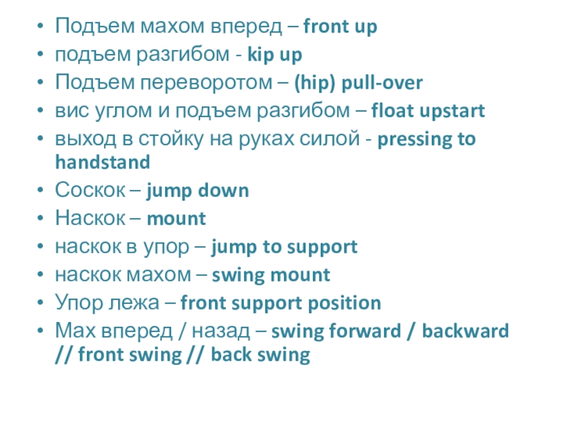Мах вперед / назад – swing forward / backward // front swing // back swing