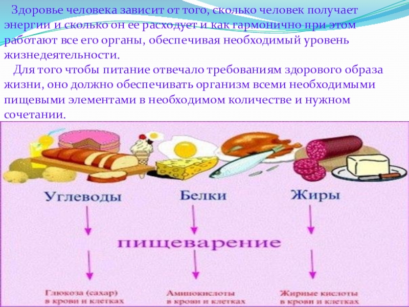 Слайд 8 Здоровье человека зависит от того, сколько человек получает энергии