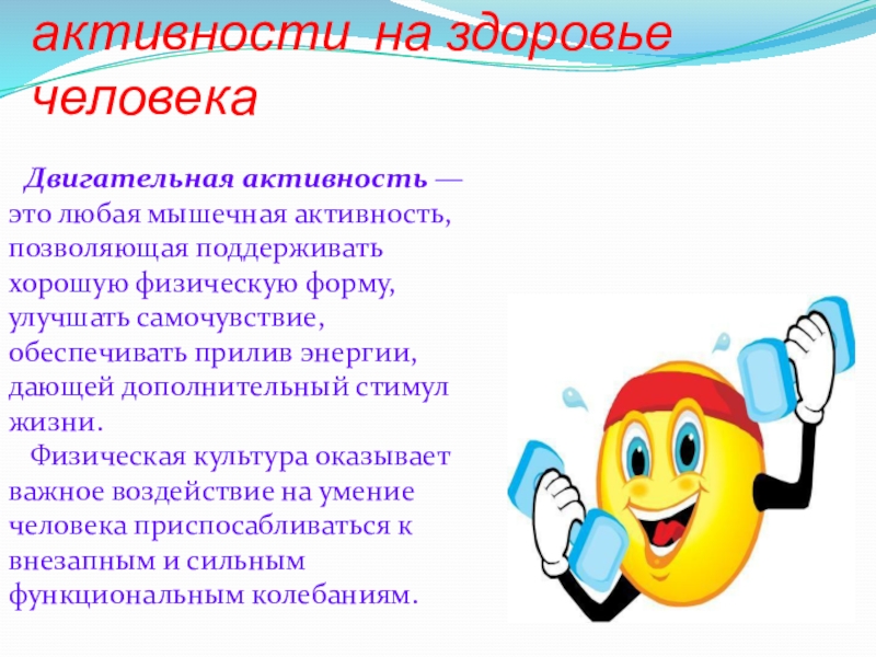 Слайд 9 6) Влияние двигательной активности на здоровье человека
