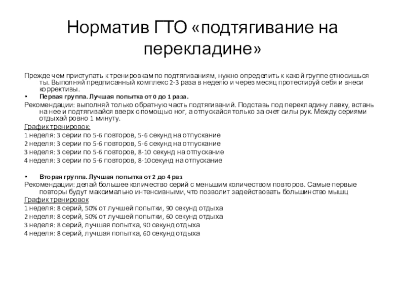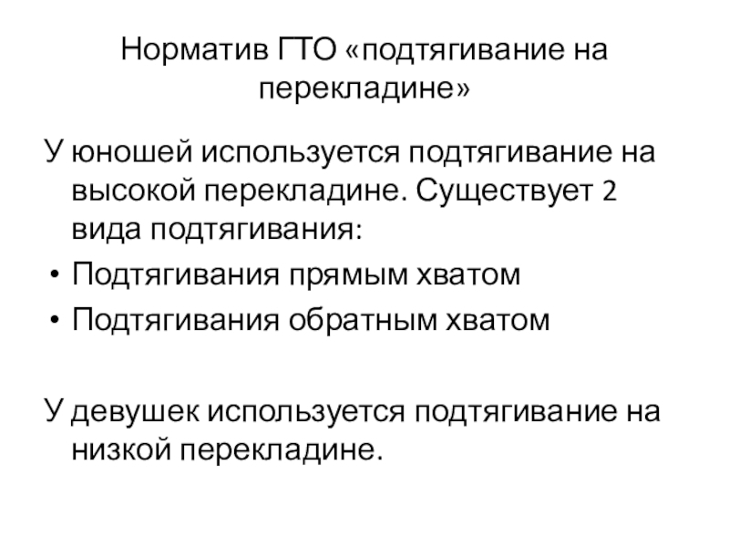 Слайд 9Норматив ГТО «подтягивание на перекладине»