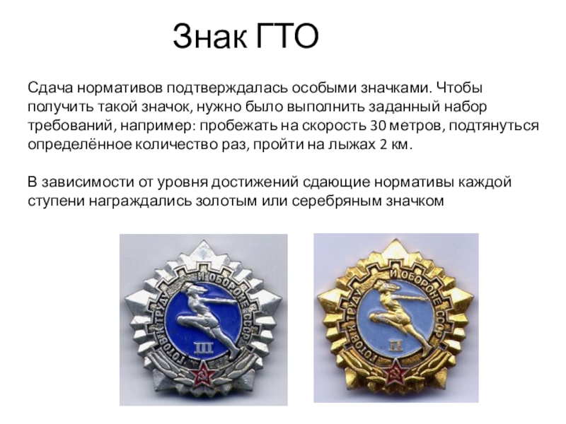 Сдача нормативов подтверждалась особыми значками. Чтобы получить такой значок, нужно