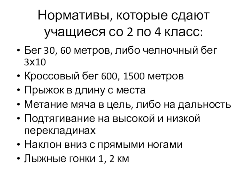 Слайд 5Нормативы, которые сдают учащиеся со 2 по 4 класс: