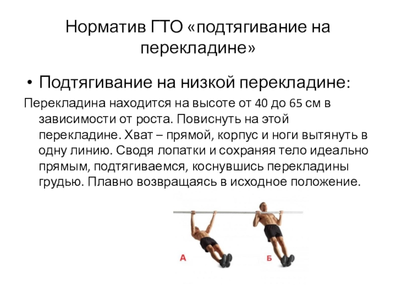 Слайд 10Норматив ГТО «подтягивание на перекладине»
