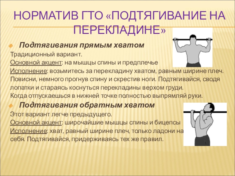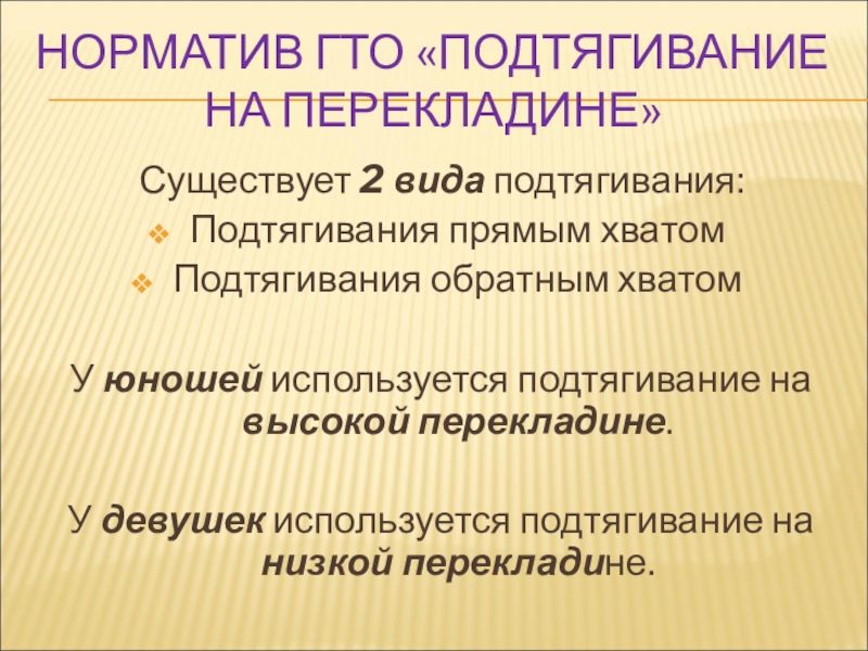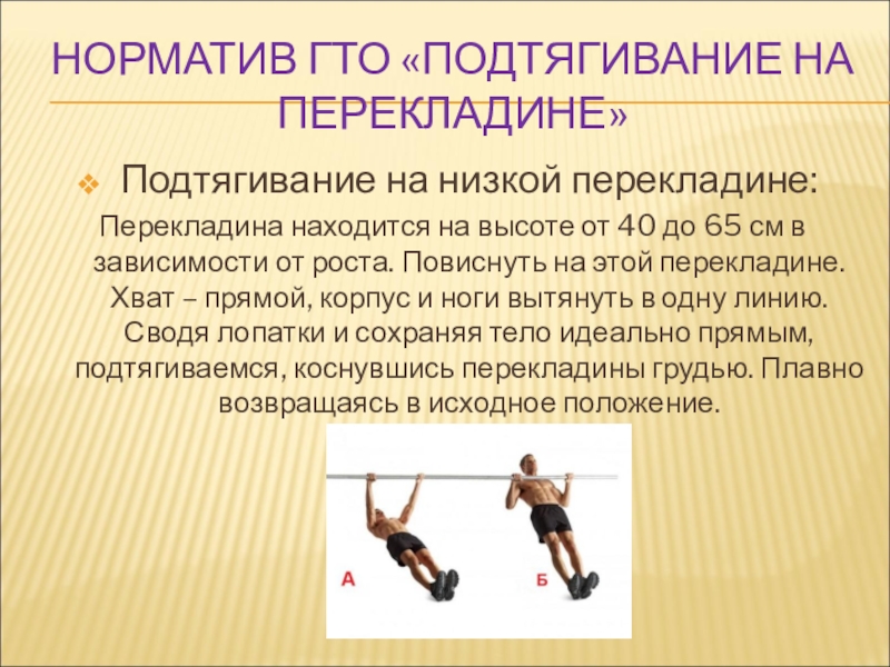 Слайд 13НОРМАТИВ ГТО «ПОДТЯГИВАНИЕ НА ПЕРЕКЛАДИНЕ»
