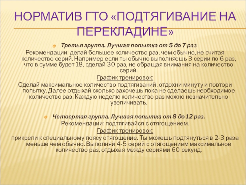 Слайд 12НОРМАТИВ ГТО «ПОДТЯГИВАНИЕ НА ПЕРЕКЛАДИНЕ»