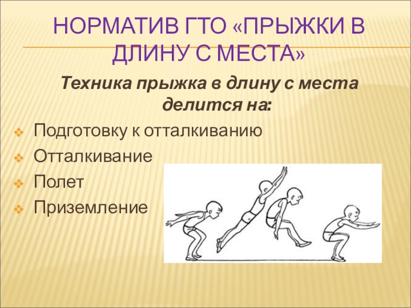 Слайд 7НОРМАТИВ ГТО «ПРЫЖКИ В ДЛИНУ С МЕСТА»