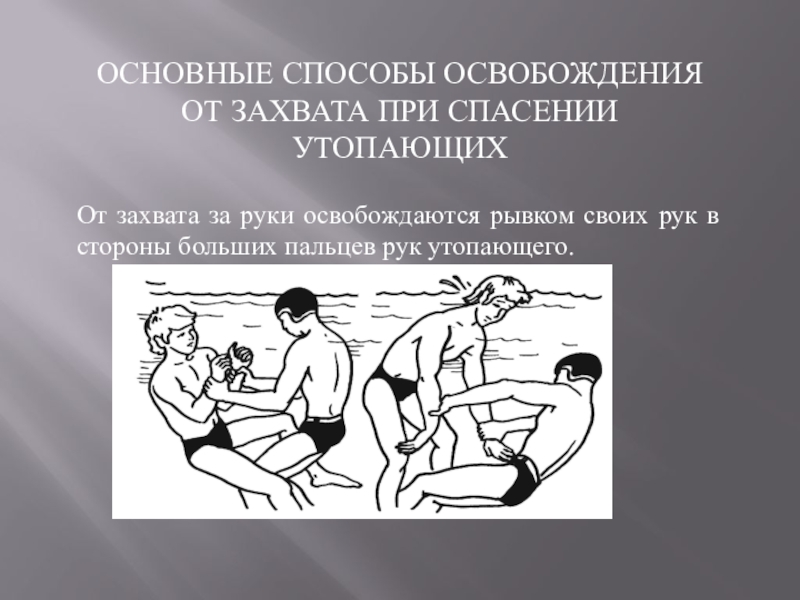Слайд 8ОСНОВНЫЕ СПОСОБЫ ОСВОБОЖДЕНИЯ ОТ ЗАХВАТА ПРИ СПАСЕНИИ УТОПАЮЩИХ