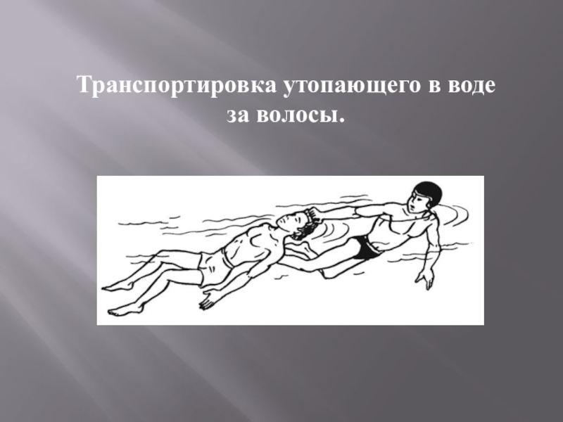 Слайд 20Транспортировка утопающего в воде за волосы.