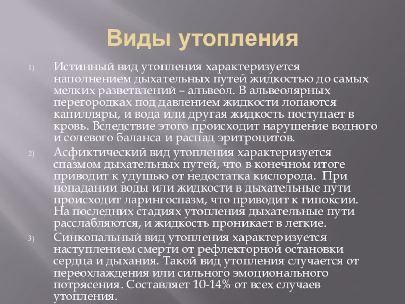 Истинный вид утопления характеризуется наполнением дыхательных путей жидкостью до самых