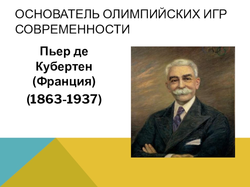 Слайд 11ОСНОВАТЕЛЬ ОЛИМПИЙСКИХ ИГР СОВРЕМЕННОСТИ