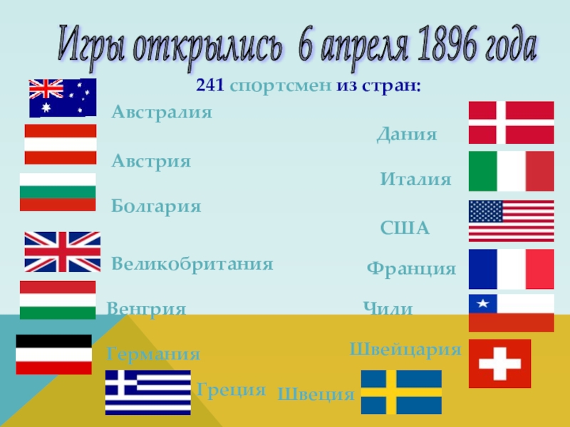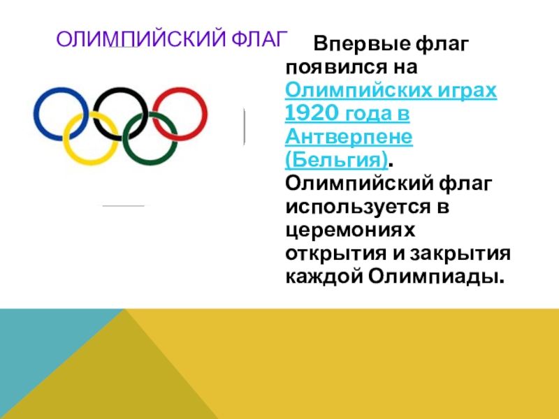 Слайд 15 Впервые флаг появился на Олимпийских играх 1920 года в Антверпене (Бельгия).