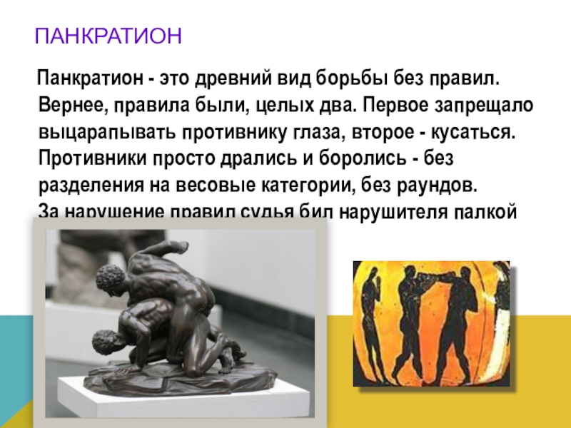 Панкратион - это древний вид борьбы без правил. Вернее,