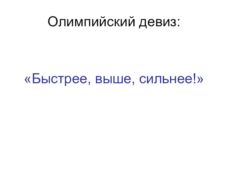 Олимпийский девиз:«Быстрее, выше, сильнее!»