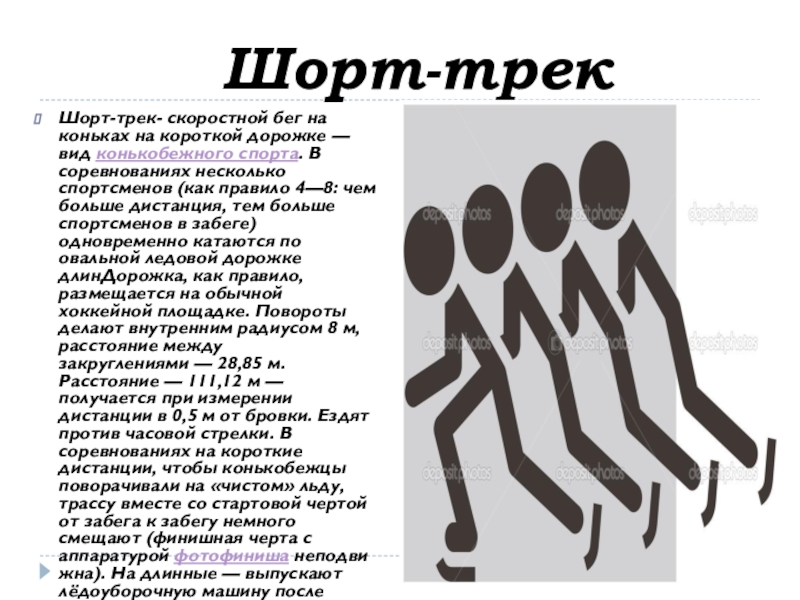 Шорт-трек- скоростной бег на коньках на короткой дорожке — вид конькобежного спорта. В
