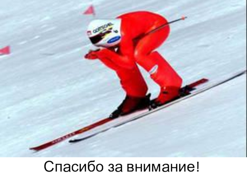 Слайд 8При спуске с горы большое значение имеет положение тела – стойка.