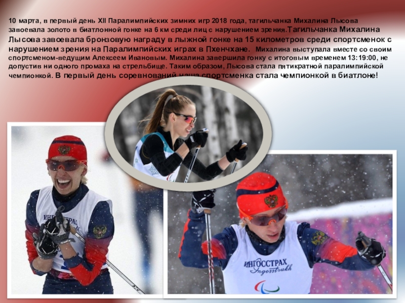 Слайд 810 марта, в первый день XII Паралимпийских зимних игр 2018 года,