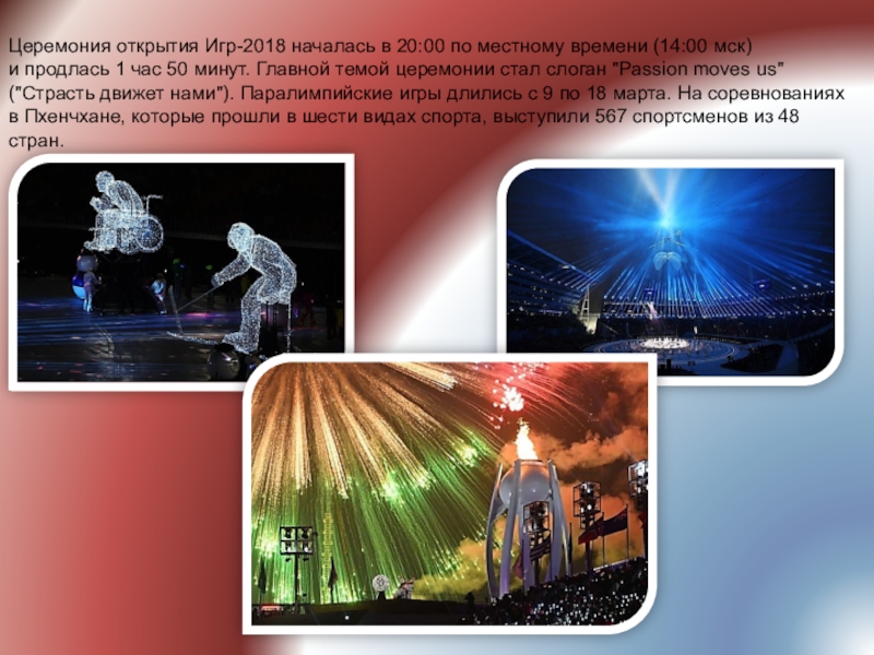 Слайд 2018 марта в южнокорейском Пхенчхане завершаются зимние Паралимпийские игры-2018. На прошедших