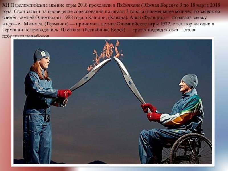 Слайд 4XII Паралимпийские зимние игры 2018 проходили в Пхёнчхане (Южная Корея) с