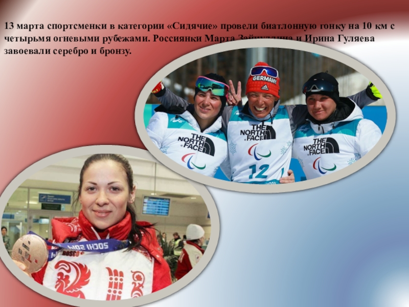 Слайд 710 марта на Играх медали в копилку сборной России принесли биатлонистки: