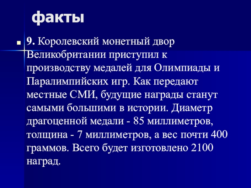 9. Королевский монетный двор Великобритании приступил к производству медалей для Олимпиады