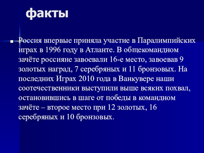 Россия впервые приняла участие в Паралимпийских играх в 1996 году в