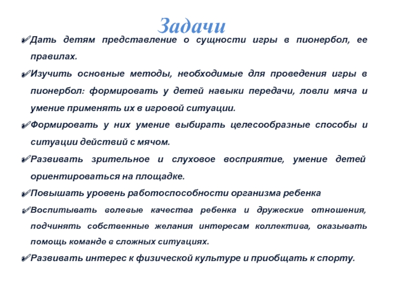 Дети становятся тройками на расстоянии 2 м друг от друга. У каждой тройки по мячу. По свистку они передают мяч друг другу заданным способом, стараясь не уронить его. Побеждает тройка, быстрее сделавшая 10 передач мяча без падения его на землю. Игра останавливается свистком. Победителя игры определяют по жесту судьи - взмах руки в сторону выигравшей тройки.