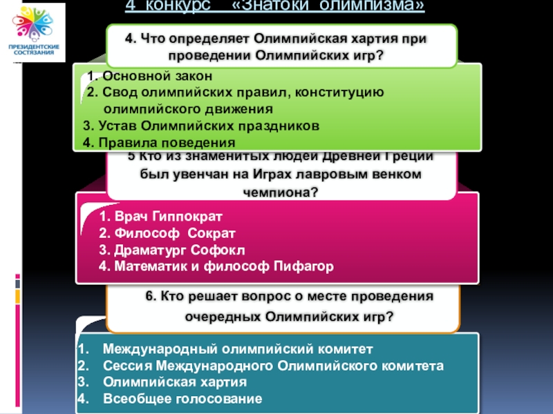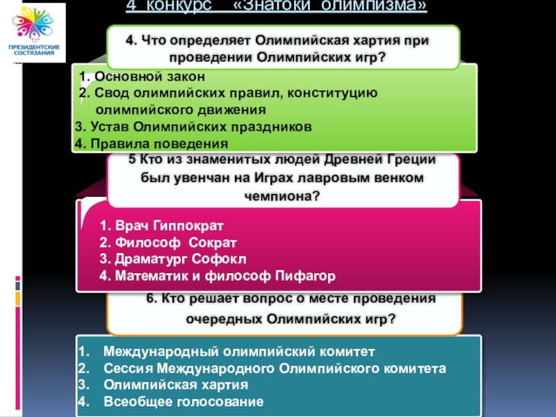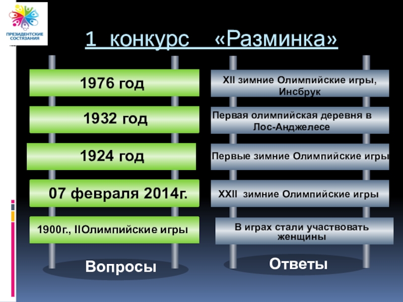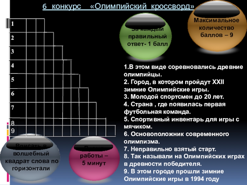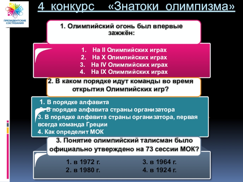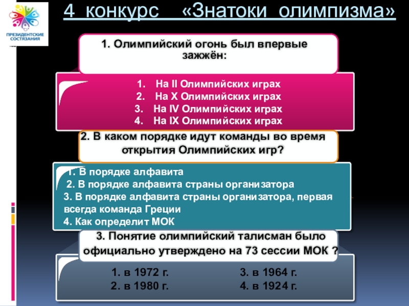 Команда должна назвать год и город, в которой проходили эти игры, нарисовать талисман игр и рассказать о нем.