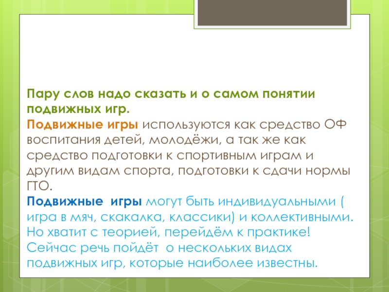 Слайд 3Пару слов надо сказать и о самом понятии подвижных игр.