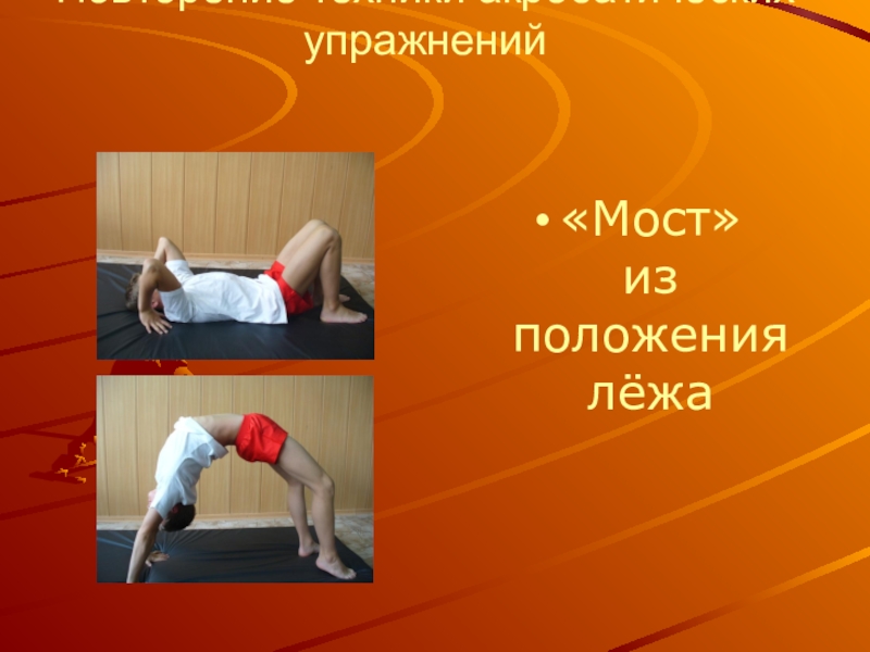 Повторение техники акробатических упражнений   «Мост»  из положения лёжа