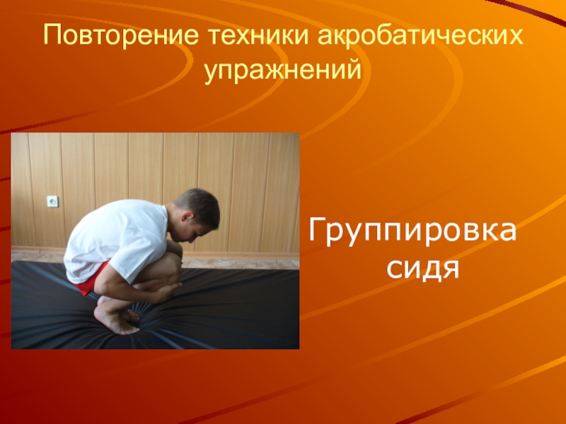 Повторение техники акробатических упражненийГруппировка сидя