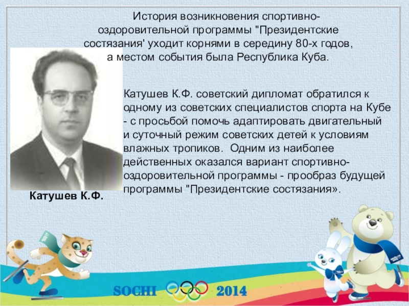История возникновения спортивно-оздоровительной программы "Президентские состязания' уходит корнями в середину 80-х годов, а местом события была Республика Куба.