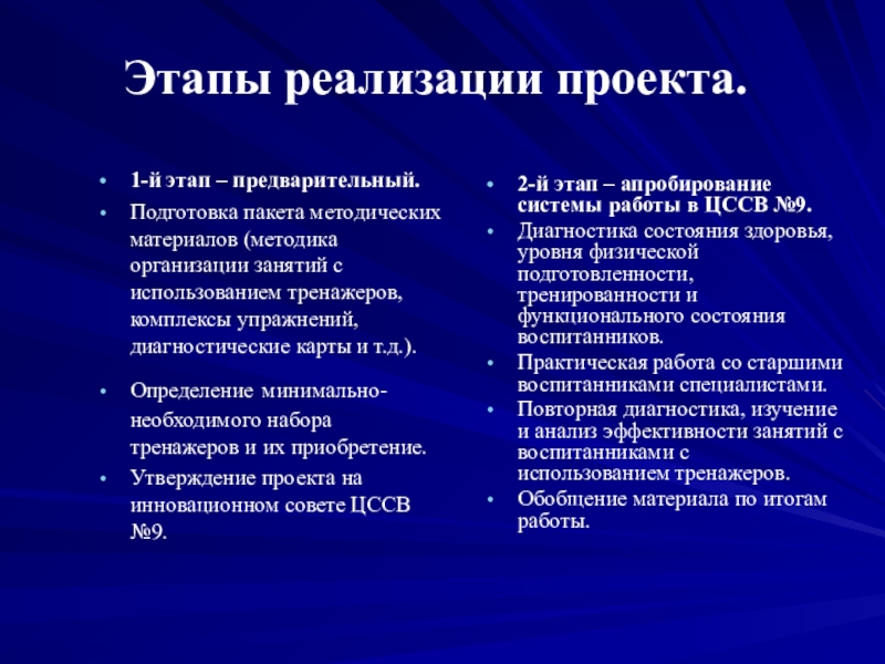 2-й этап – апробирование системы работы в ЦССВ №9.