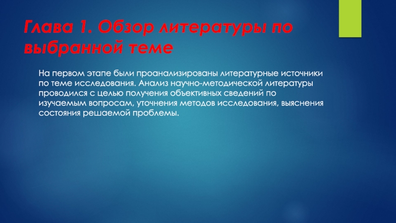 Слайд 6Глава 1. Обзор литературы по выбранной теме