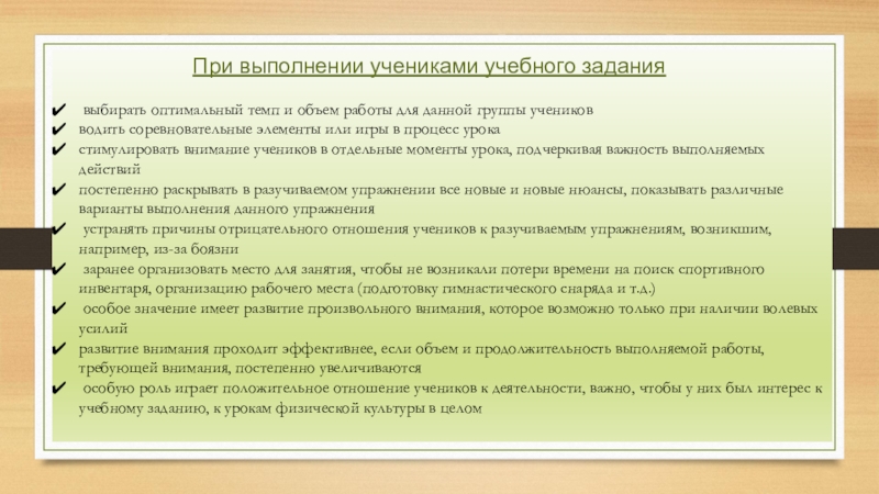 Важно, чтобы физические упражнения, применяемые на уроке, отличались доступностью на начальном этапе и постепенным повышением сложности (интеллектуальной) на последующих этапах физического воспитания.