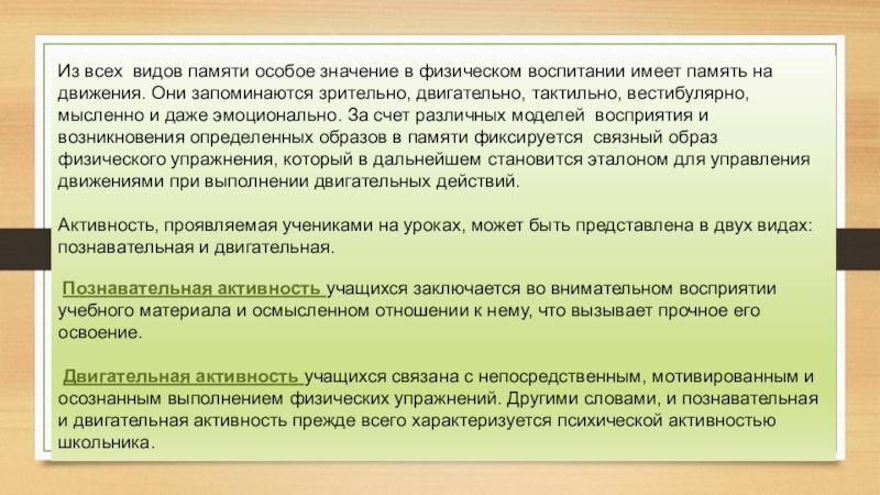 Слайд 18Из всех видов памяти особое значение в физическом воспитании имеет память