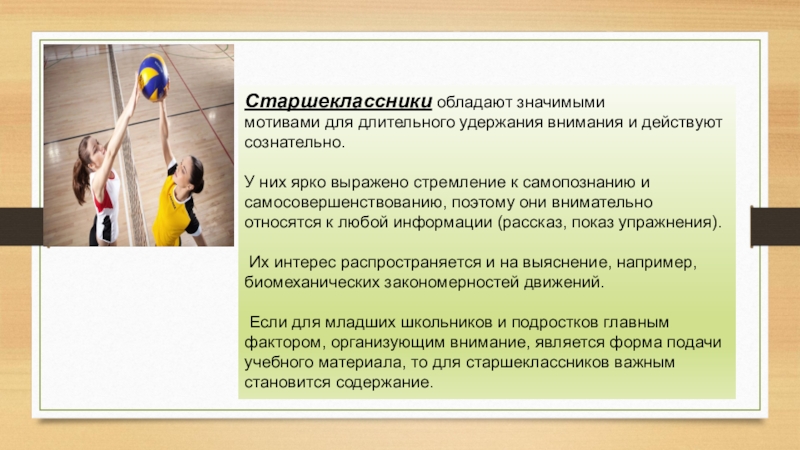 Если для младших школьников и подростков главным фактором, организующим внимание, является форма подачи учебного материала, то для старшеклассников важным становится содержание.
