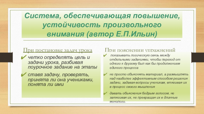 Система, обеспечивающая повышение, устойчивость произвольного внимания (автор Е.П.Ильин)
