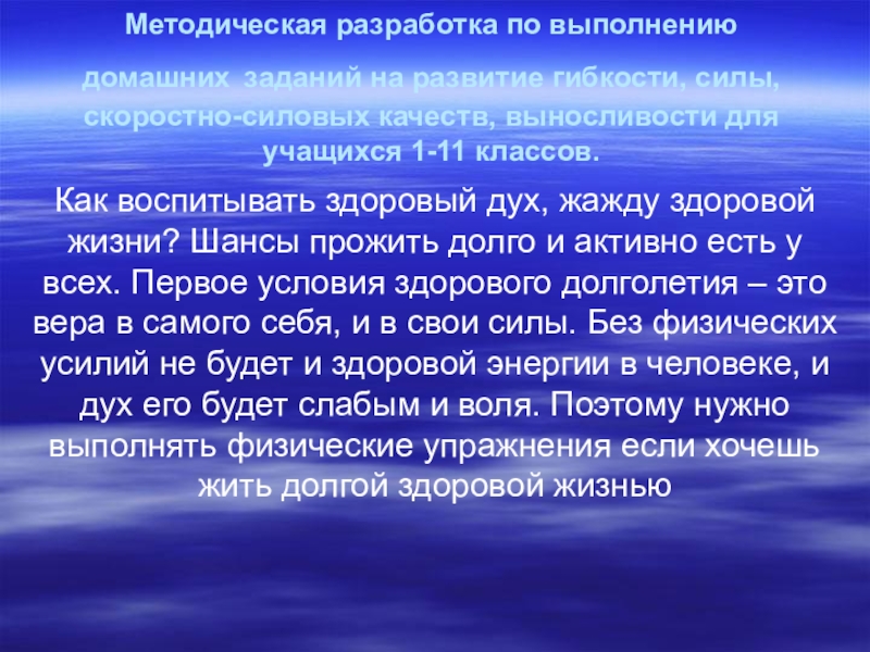 Слайд 1Методическая разработка по выполнению домашних заданий на развитие гибкости, силы, скоростно-силовых