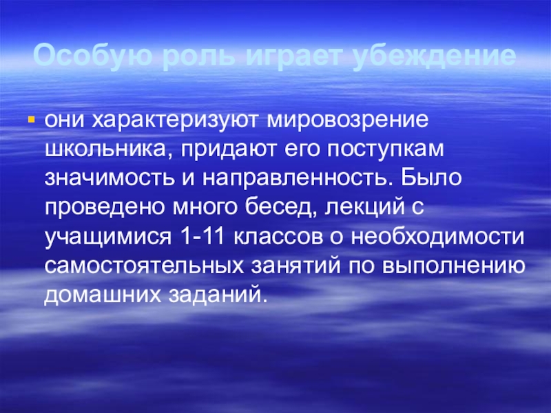 значимость и направленность. Было проведено много бесед, лекций с учащимися 1-11 классов о необходимости самостоятельных занятий по выполнению домашних заданий.