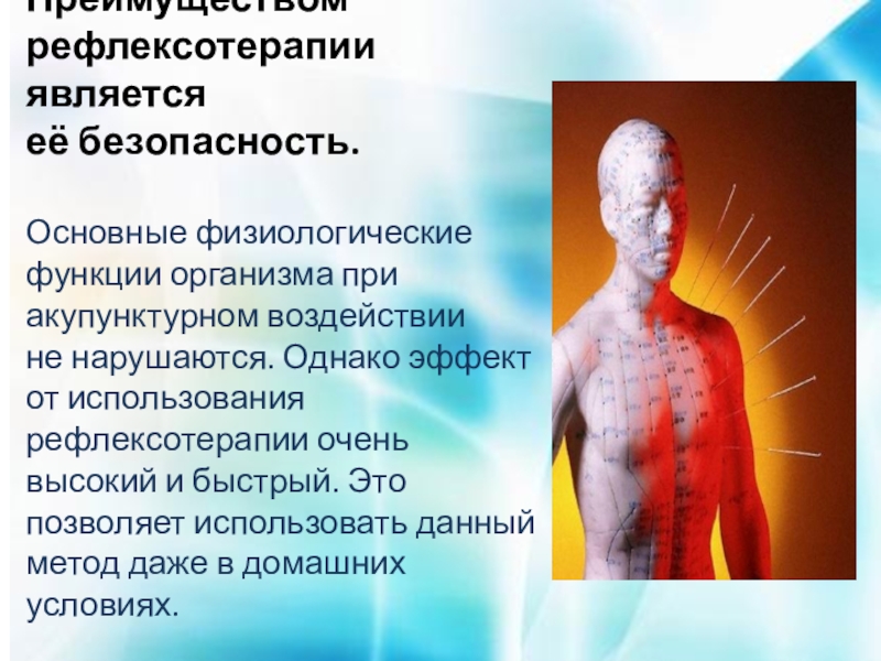 Слайд 3В основе рефлексотерапии лежит представление об организме, как единой взаимосвязанной системе,