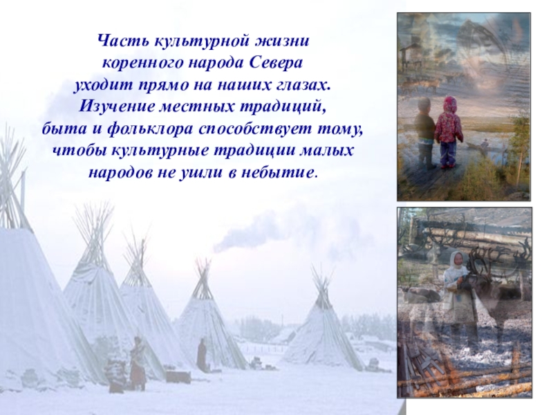 Часть культурной жизни коренного народа Севера уходит прямо на наших глазах. Изучение местных традиций, быта и фольклора