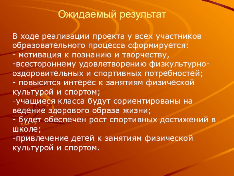 -учащиеся класса будут сориентированы на ведение здорового образа жизни;
