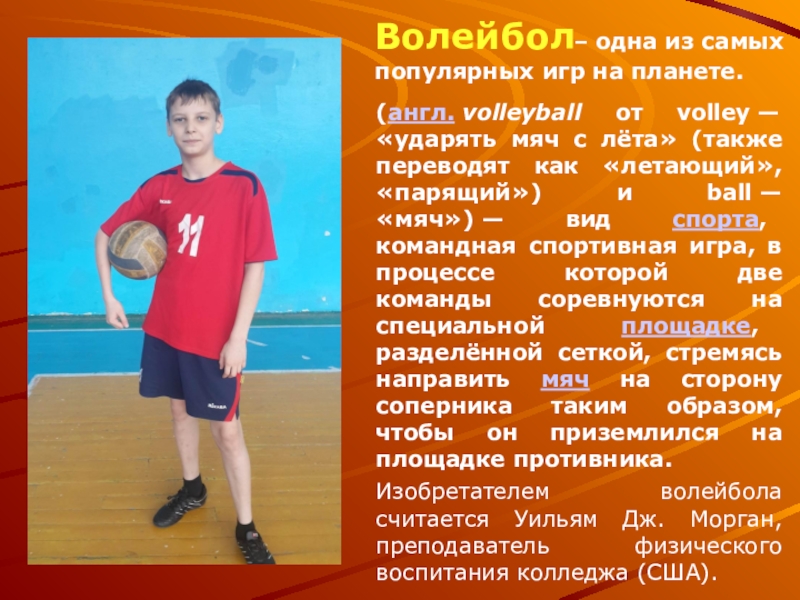 Изобретателем волейбола считается Уильям Дж. Морган, преподаватель физического воспитания колледжа (США).