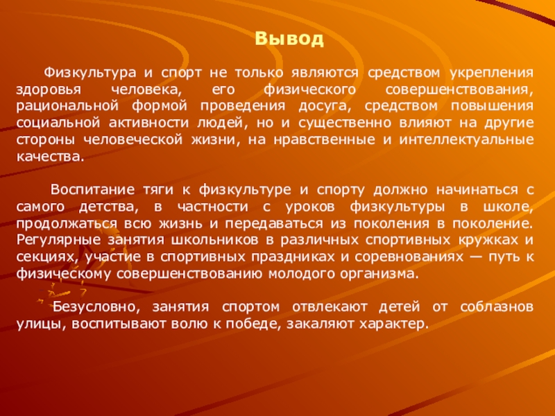 Физкультура и спорт не только являются средством укрепления здоровья человека, его