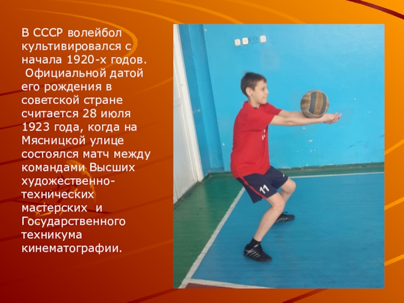рождения в советской стране считается 28 июля 1923 года, когда на Мясницкой улице состоялся матч между командами Высших художественно-технических мастерских и Государственного техникума кинематографии.