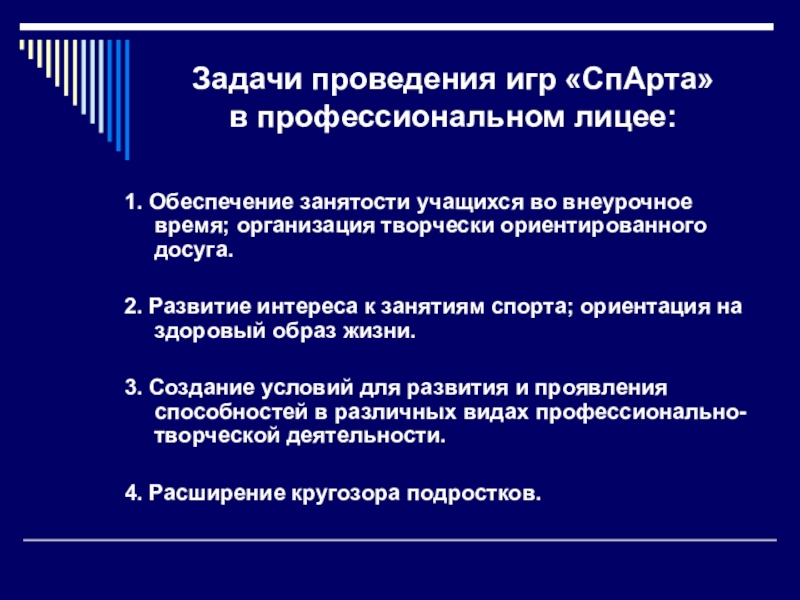 Проведение ежегодных игр «СпАрта» в учреждениях НиСПО направлено на возрождение духовности в спорте, повышение его культурного и духовно-нравственного потенциала, а также на поиск новых форм организации досуга учащихся