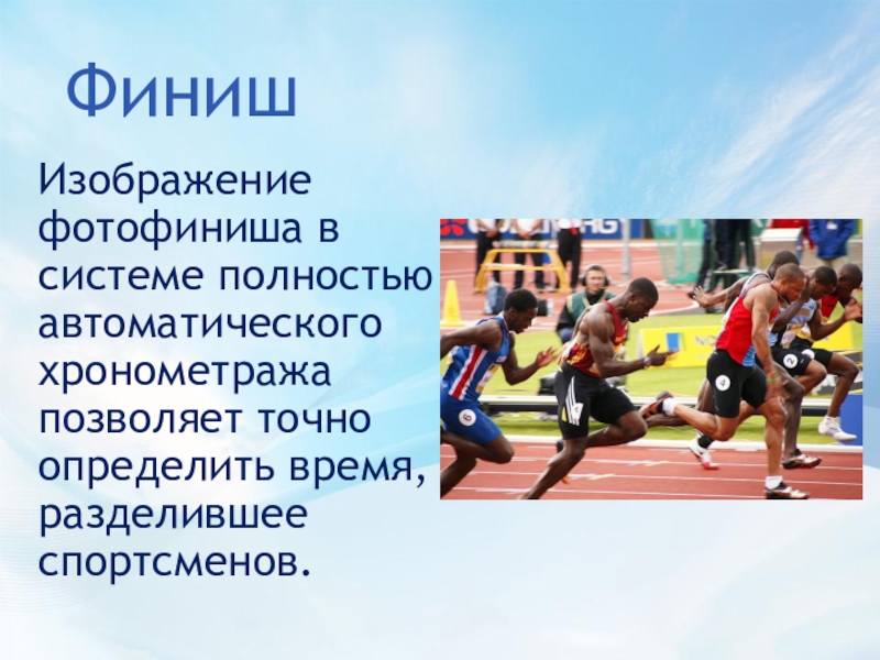 Изображение фотофиниша в системе полностью автоматического хронометража позволяет точно определить время,