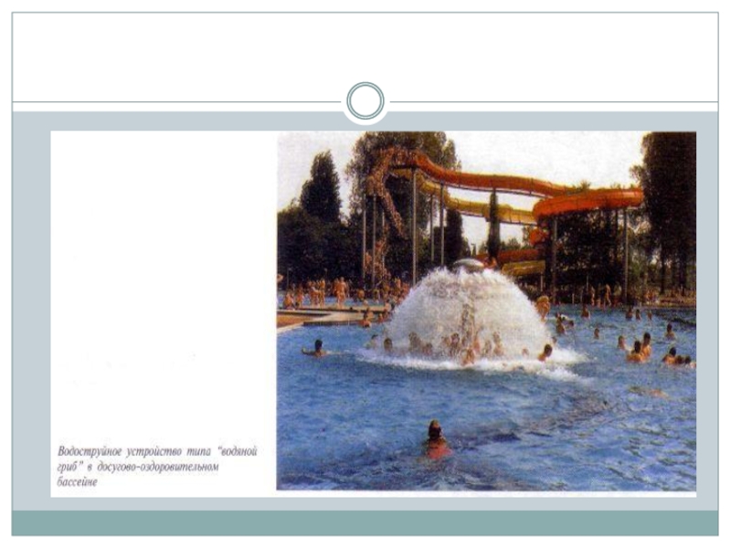 состав которых наряду со спортивными ваннами стали включаться ванны для оздоровительного плавания, купания, игр и общеразвивающих упражнений в воде, а также различного рода аттракционы типа водяных горок, различных водоструйных устройств.