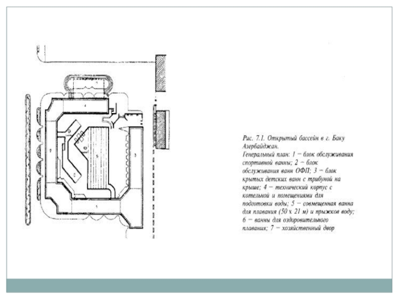 в воду и для обучения плаванию расположены в отдельных объемах и соединены общими помещениями обслуживания.