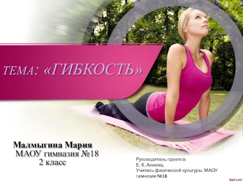 ТЕМА: «ГИБКОСТЬ»Малмыгина Мария    МАОУ гимназия №18  2 классРуководитель проекта: Е. К. Алиева, Учитель